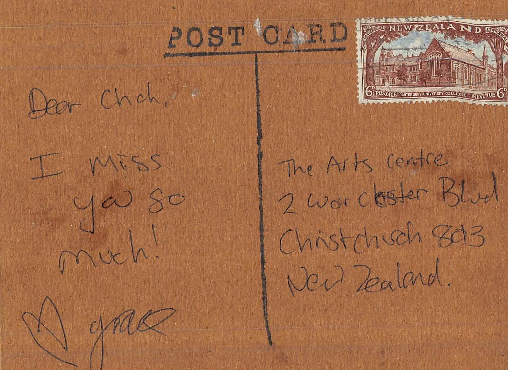 Title: Arts Centre Postcard, LOVE CHCH Participant Postcard Example